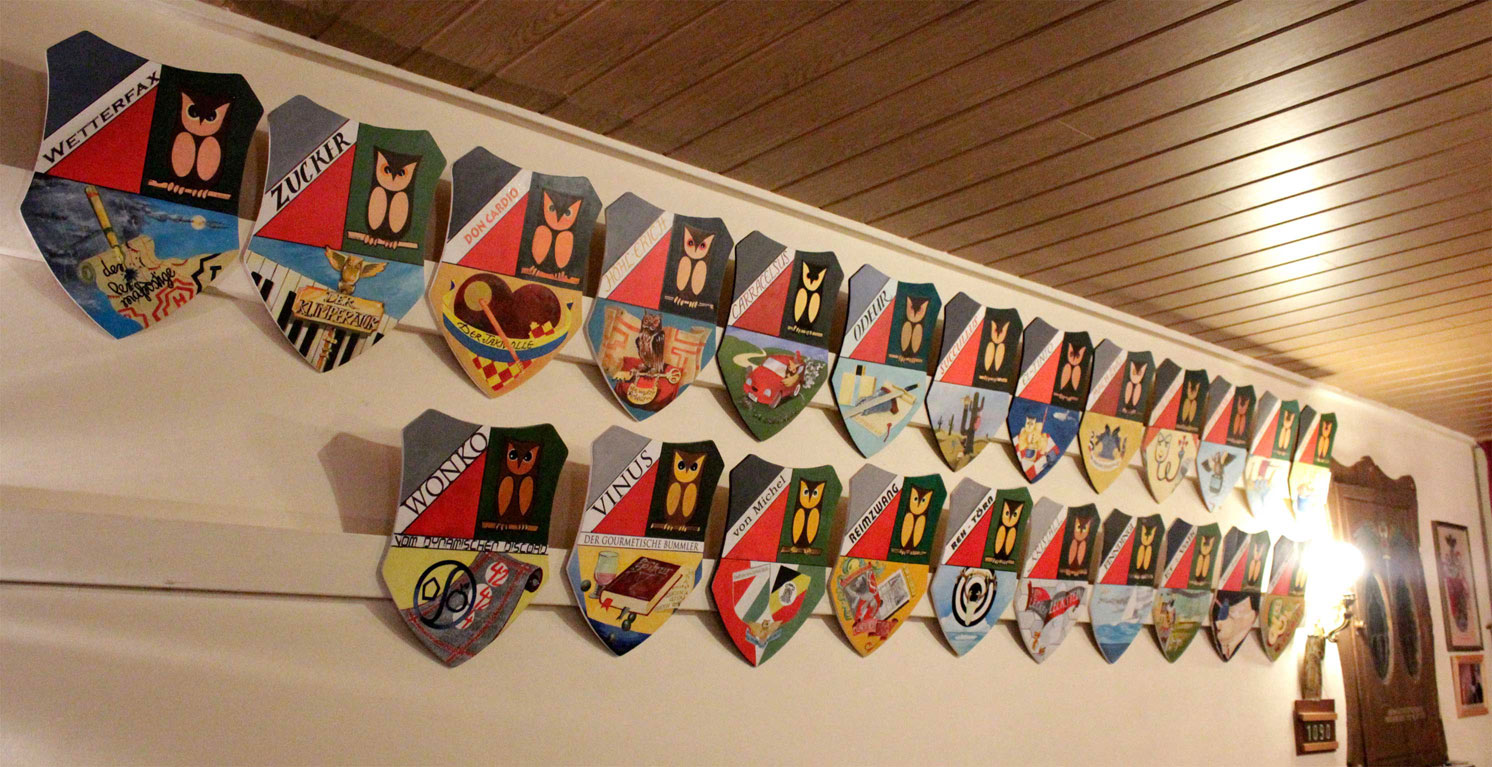 Die Wappenschilder der Ritter der Geraha an der Burgseite